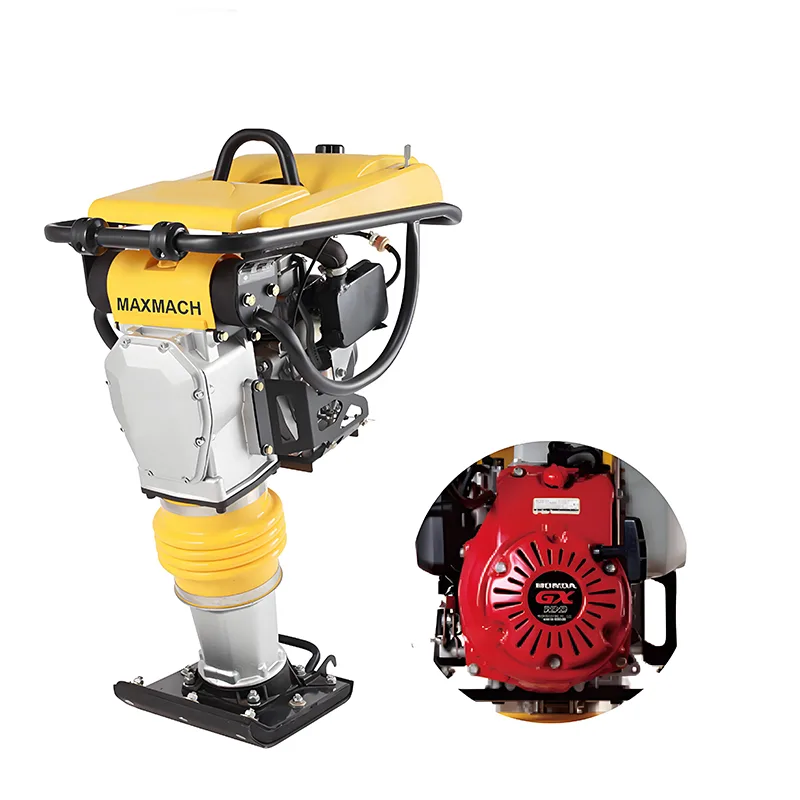 The MAXMACH Vibratory Jumping Compactor is an industrial-grade tamping rammer designed for high-demand construction projects. Powered by a 5HP engine and featuring a vibratory jumping structure, it integrates robust performance with practical usability—delivering 14kN ramming force and a percussion rate of 640-680 times/min, while maintaining an 88kg weight and 10-13m/min advance speed. Suitable for both new and used equipment requirements, it comes with comprehensive quality assurances, including provided video outgoing-inspection, machinery test reports, and a 1-year warranty, making it a reliable choice for industrial construction teams and professional contractors.